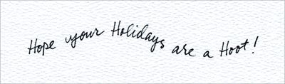 Inside the greeting is "Hope your Holidays are a Hoot!" or you may choose to order this card without a greeting inside.