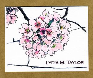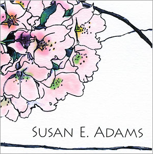 5.5" x 4.25" folded notes are printed on heavy bright white stock from sustainable forests and come with your choice of pale pink, pale green, or matching white envelopes (see thank you notes and plain notes for envelope colors). Set of ten notes is packaged in kraft box with clear plastic lid and tied with coordinating fabric ribbon.